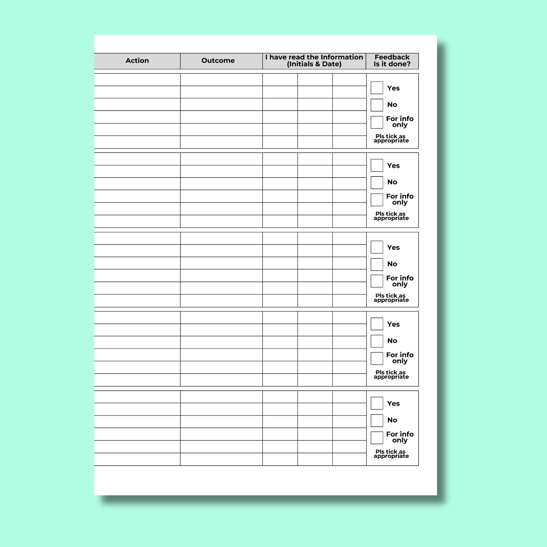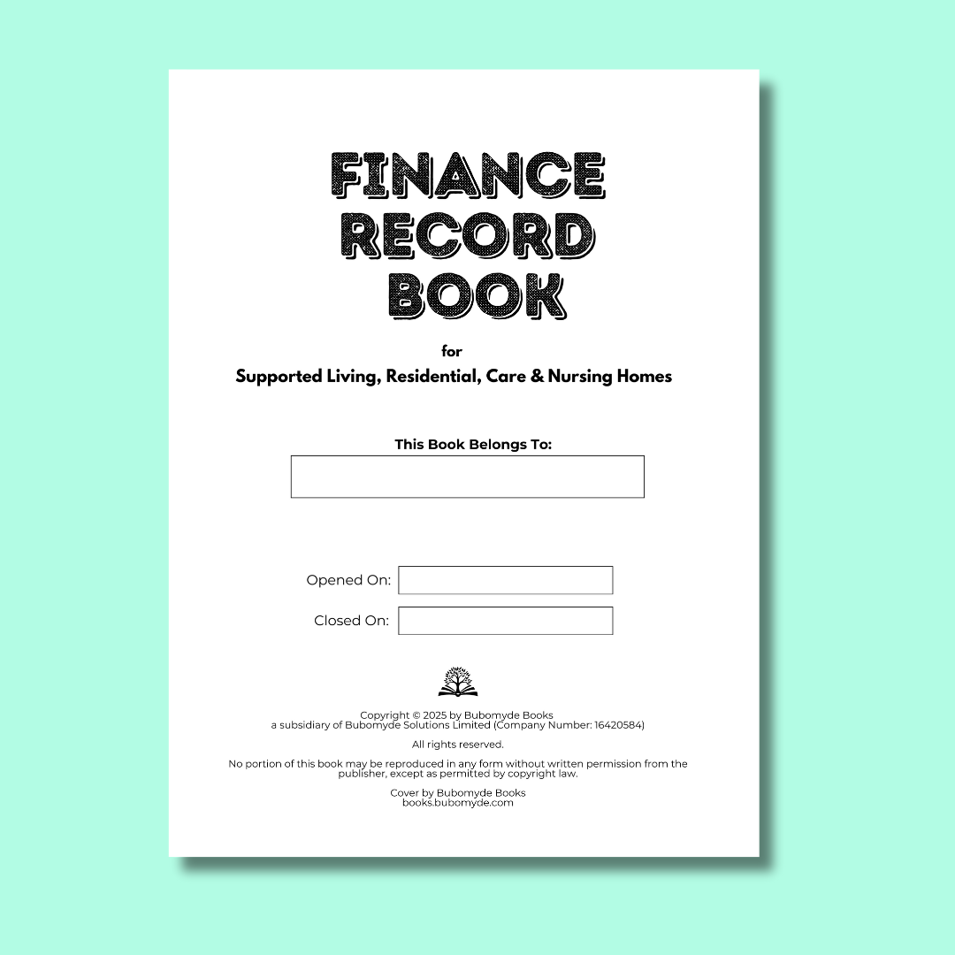The Finance Record Book is your all-in-one solution for accurate, transparent, and accountable financial management in Supported Living, Residential, Care, and Nursing Homes. Thoughtfully designed to capture every penny received and spent, it helps you safeguard residents’ funds, eliminate errors, and maintain trust among staff, residents, and families.